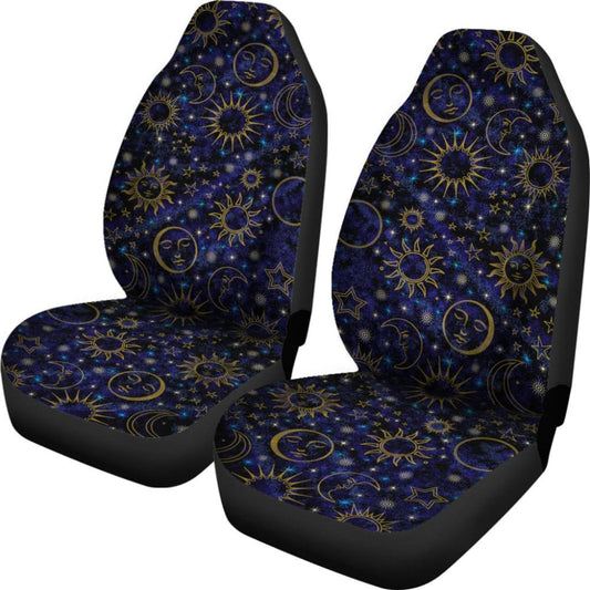 Celestial Night Sky Black Blue Gold Suns Moons Stars Car Seat Covers