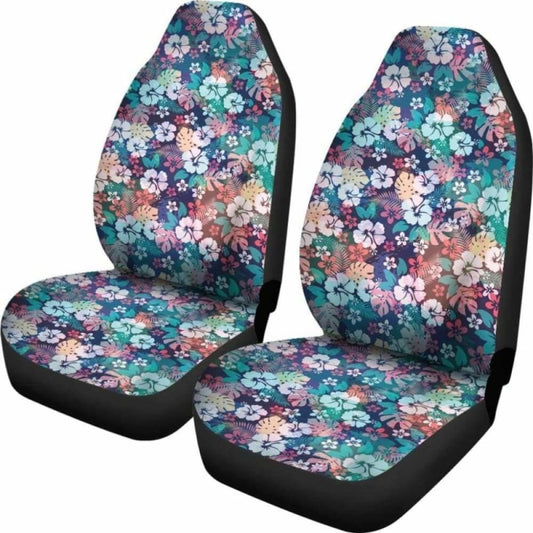 Colorful Rainbow Hibiscus Hawaiian Tropical Flower Car Seat Covers
