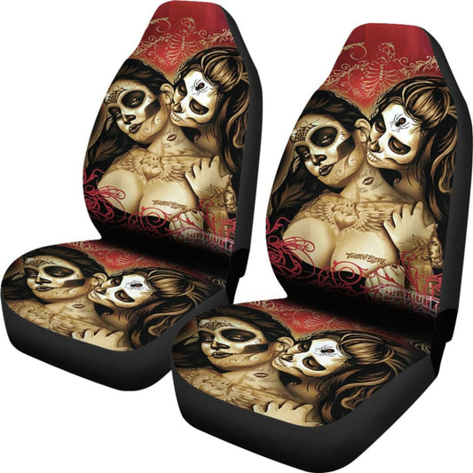 Couple Love Valentine Calavera Sugar Skull Style Car Seat Covers