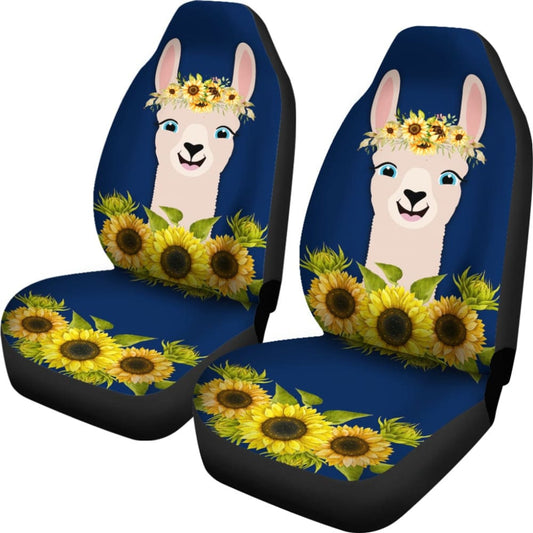 Cute Funny Llama With Sunflower Floral Car Seat Covers