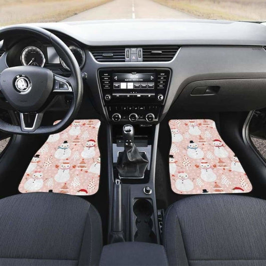 Cute Snowman Christmas Tree Snowpink Background Front And Back Car Mats