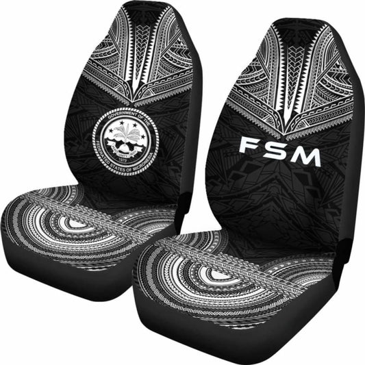 Federated States Of Micronesia Car Seat Cover - F S M Seal Polynesian Chief Tattoo Black Version -