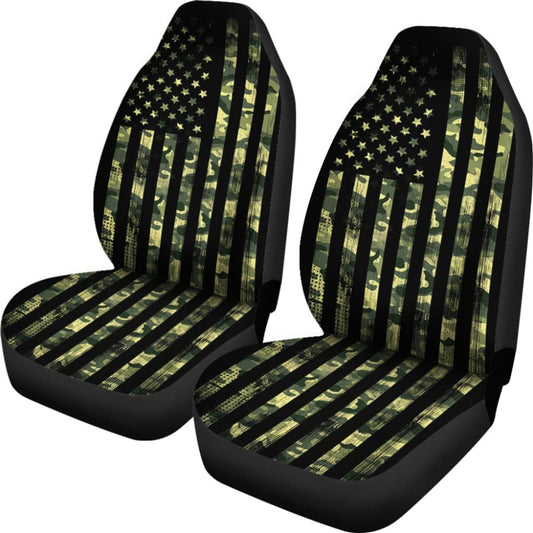 Amazing Thin Green Gray Line American Flag Car Seat Covers