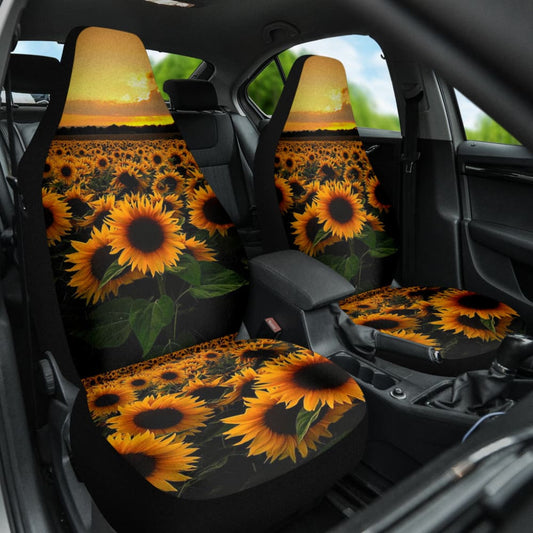 Amazing Sunflower Pattern Gray Burlap Background Car Seat Covers