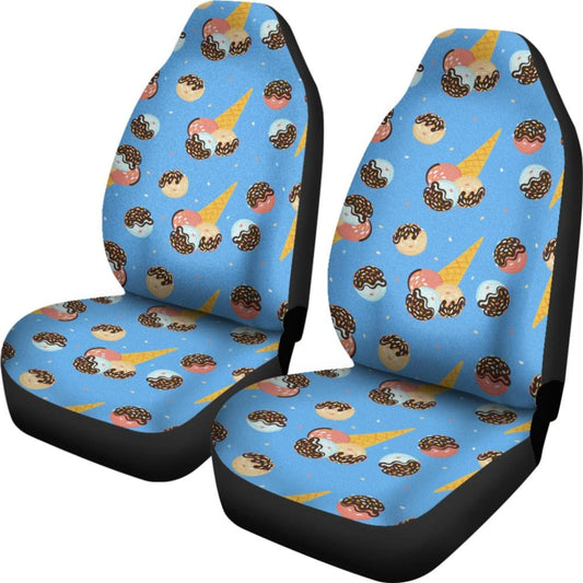 Funny Cute Ice Cream Blue Background Car Seat Covers