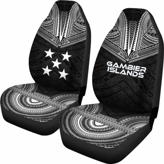 Gambier Island Car Seat Cover - Gambier Island Flag Polynesian Chief Tattoo Black Version -