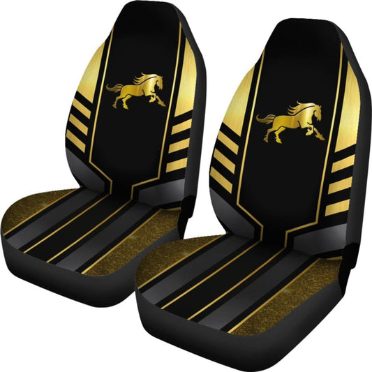 Amazing Yellow Black Horse Mustang Custom Metallic Style Printed Car Seat Covers