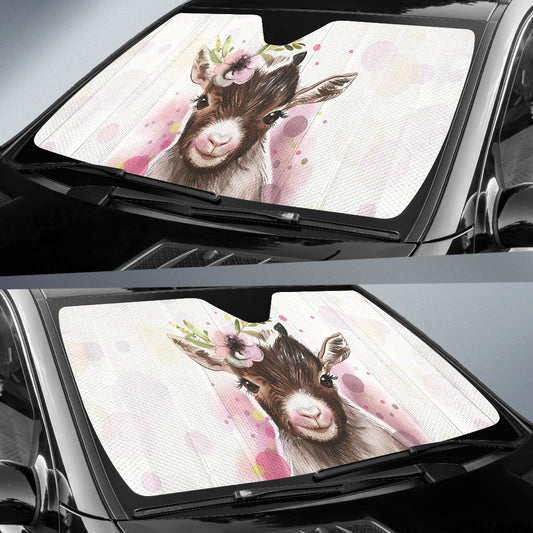 Goat Cute Floral Watercolor Car Auto Sun Shades