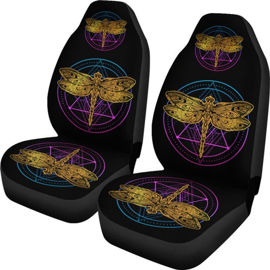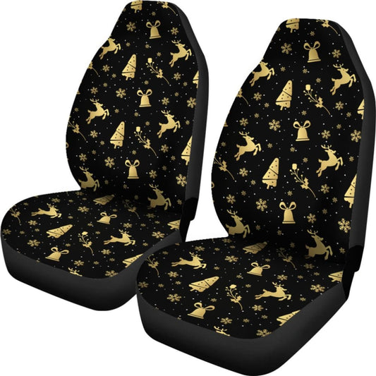 Golden Christmas Reindeer And Snowflake Car Seat Covers