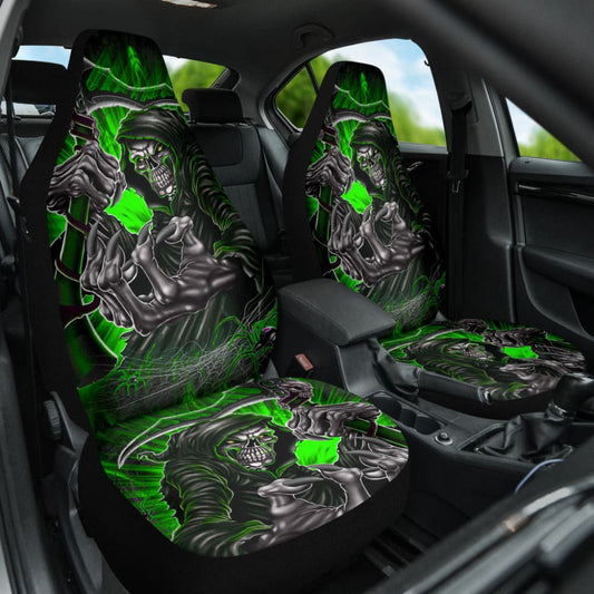 Gray And Green Gothic Skull Grim Reaper Car Seat Covers
