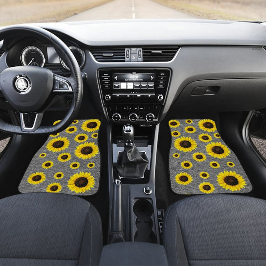 Gray Burlap Style Background With Sunflower Pattern Car Floor Mats