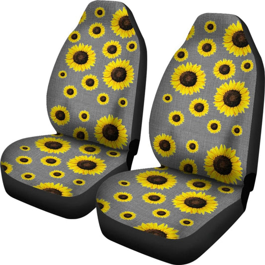 Gray Burlap Style Background With Sunflower Pattern Car Seat Covers