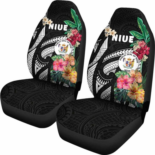 Niue Car Seat Covers Coat Of Arms Polynesian With Hibiscus