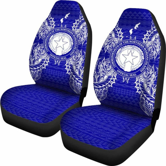 Northern Mariana Islands Car Seat Cover - Northern Mariana Islands Seal Polynesian Tattoo Blue -