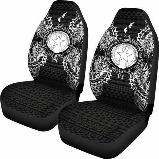 Northern Mariana Islands Car Seat Cover - Northern Mariana Islands Seal Polynesian Tattoo Black -
