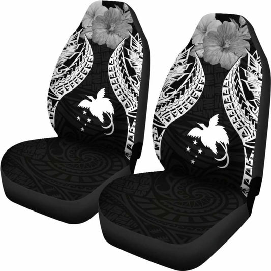 Papua New Guinea Polynesian Car Seat Covers Pride Seal And Hibiscus White -