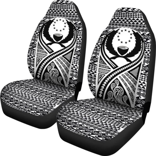 Pohnpei Car Seat Cover - Pohnpei Coat Of Arms Polynesian White Black