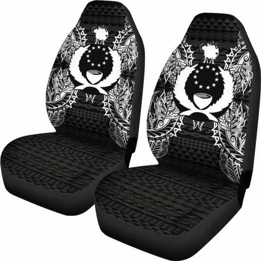 Pohnpei Car Seat Cover - Pohnpei Flag Polynesian Chief Tattoo Black Version -