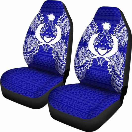 Pohnpei Car Seat Cover - Pohnpei Flag Polynesian Chief Tattoo Blue Version -