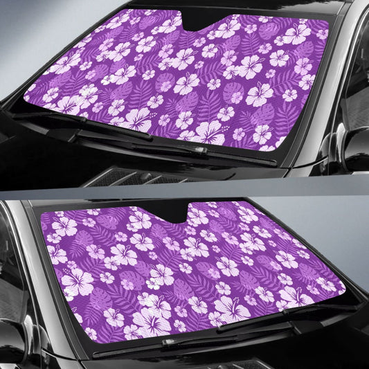 Purple With White Hibiscus Flowers Car Auto Sun Shades
