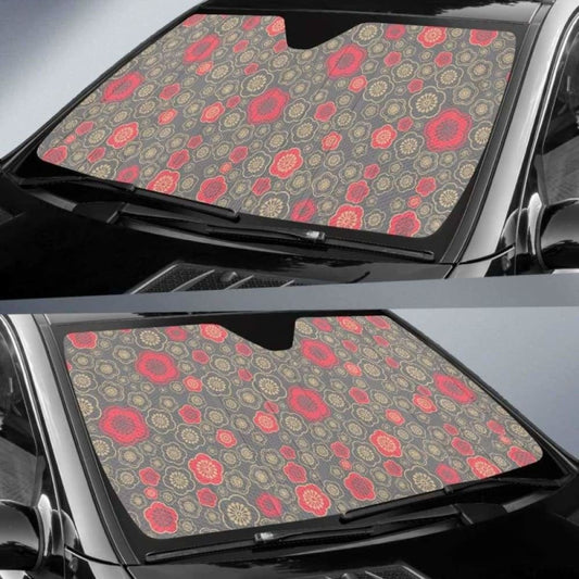 Red Gold Sakura Cherry Blossom Gray Background Car Auto Sun Shades