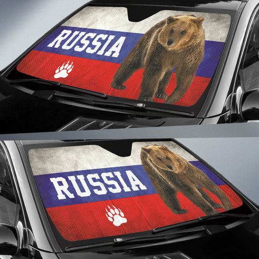 Russian Flag Furry Bear Animal Car Auto Sun Shades