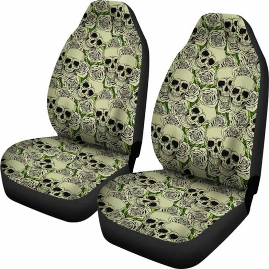 Set Of - Floral Skull - Gothic Car Seat Covers