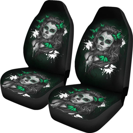 Set Of Floral Girl Sugar Skull Car Seat Covers