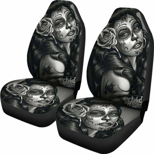 Set Of-Sugar Skull Girl - Day Of The Dead Car Seat Covers