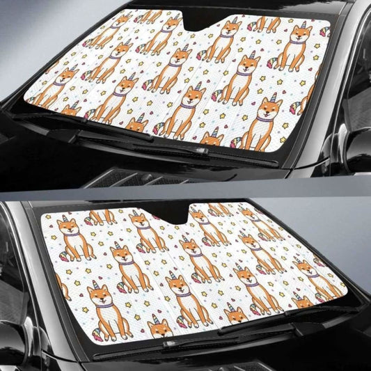Shiba Inu Unicorn Costume Horn Colorful Tail Pattern Car Auto Sun Shades