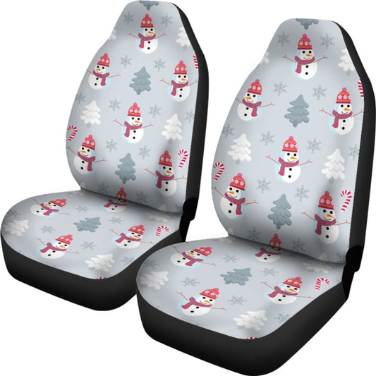 Snowman Christmas Tree Snow Gray Background Front And Back Car Mats