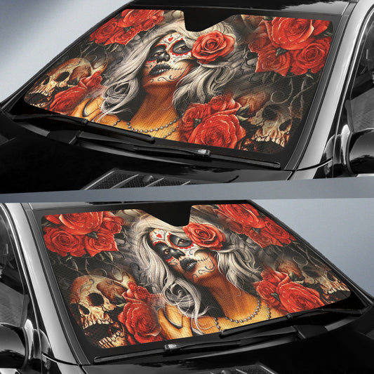 Sugar Skull Girl Flower Car Auto Sun Shades Car Accessories