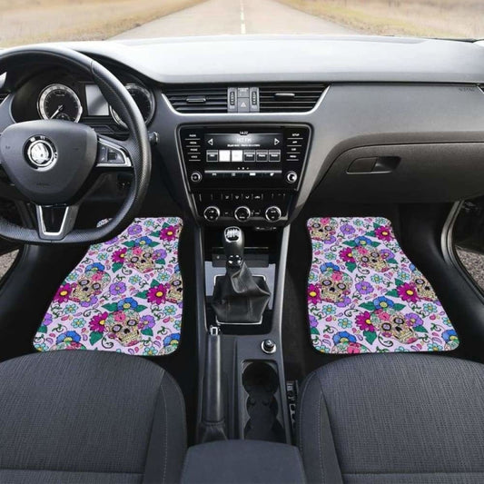 Sugar Skull Flower Pattern Front And Back Car Mats