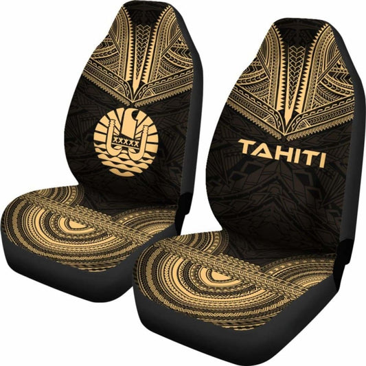 Tahiti Car Seat Cover - Tahiti Flag Polynesian Chief Tattoo Gold Version -