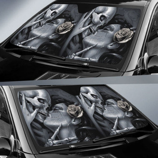 The Lovers King And Queen Kissing Skulls Skeletons Car Auto Sun Shades