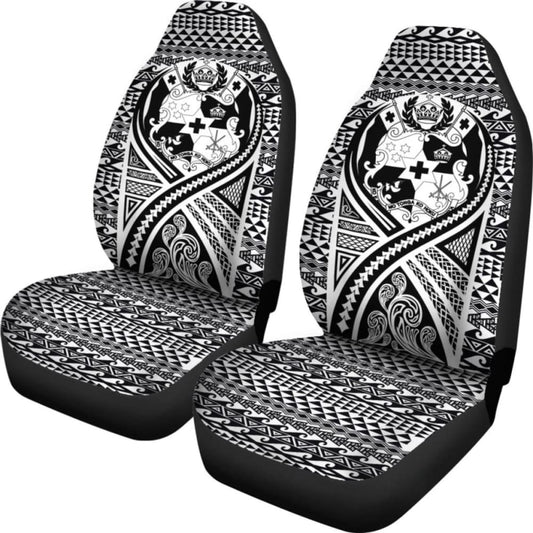 Tonga Car Seat Cover - Tonga Coat Of Arms Polynesian White Black