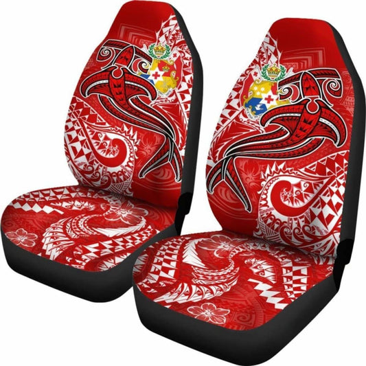 Tonga Car Seat Covers - Red Shark Polynesian Tattoo -