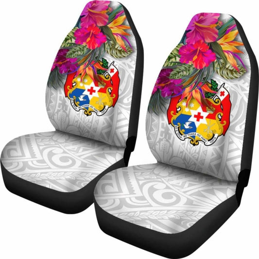 Tonga Car Seat Covers Polynesian Hibiscus White Pattern -