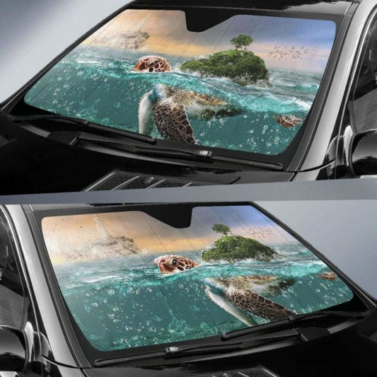 Tortoise Island Rock Ocean Mystic Underwater Bubbles Auto Sun Shades