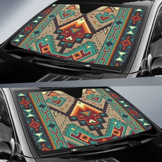 Tribe Blue Pattern Native American Car Auto Sun Shades