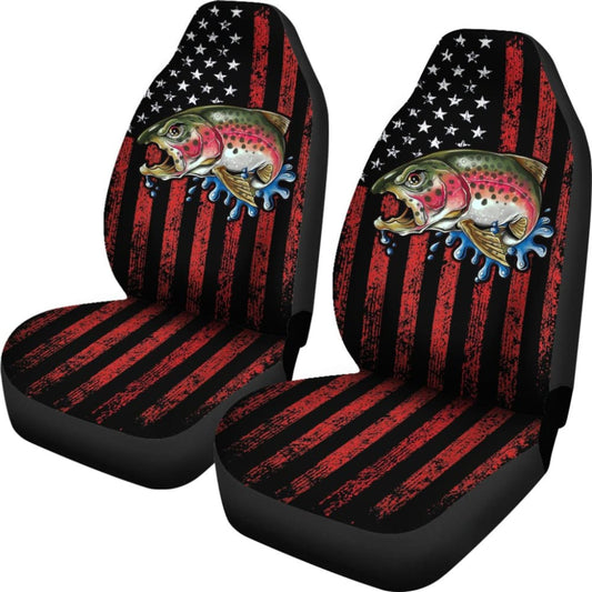 Trout Steelhead Fishing American Flag Printed Car Seat Covers