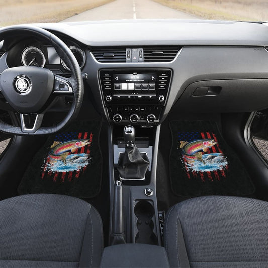 Trout Steelhead Fishing American Flag Printed Car Floor Mats
