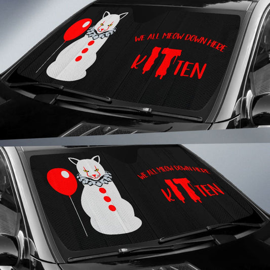 We All Meow Down Here Clown Cat KITten Pennywise Car Auto Sun Shades