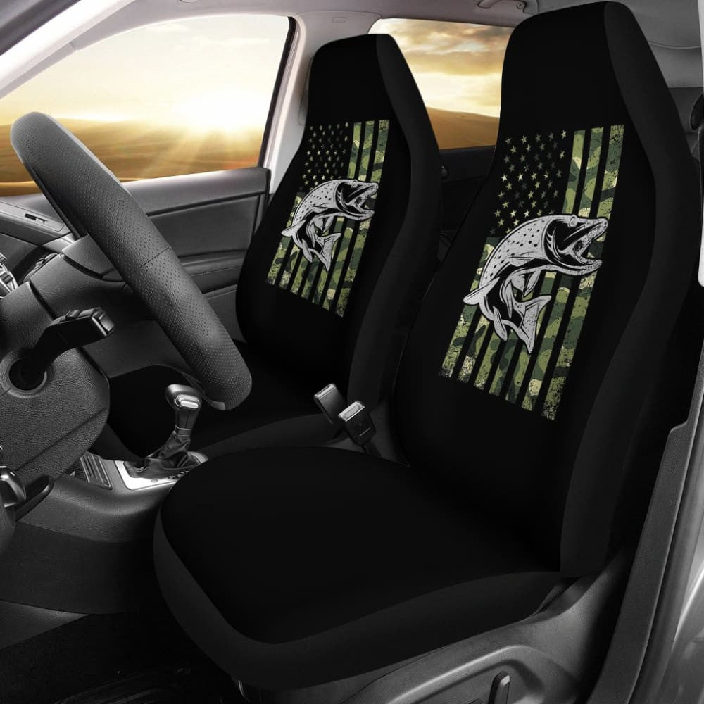 Amazing Trout Fish Custom Green American Flag Car Seat Covers