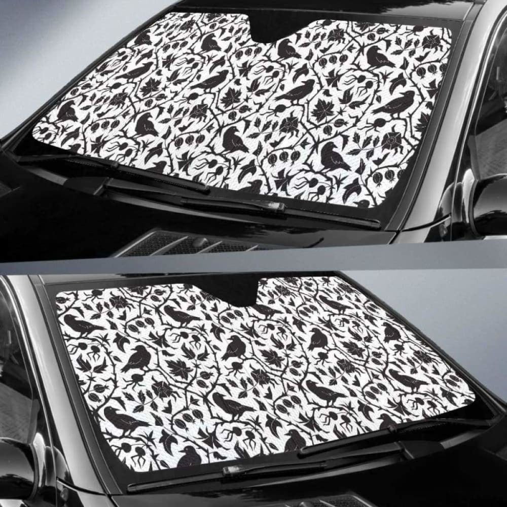 Crow Dark Floral Pattern Car Auto Sun Shades