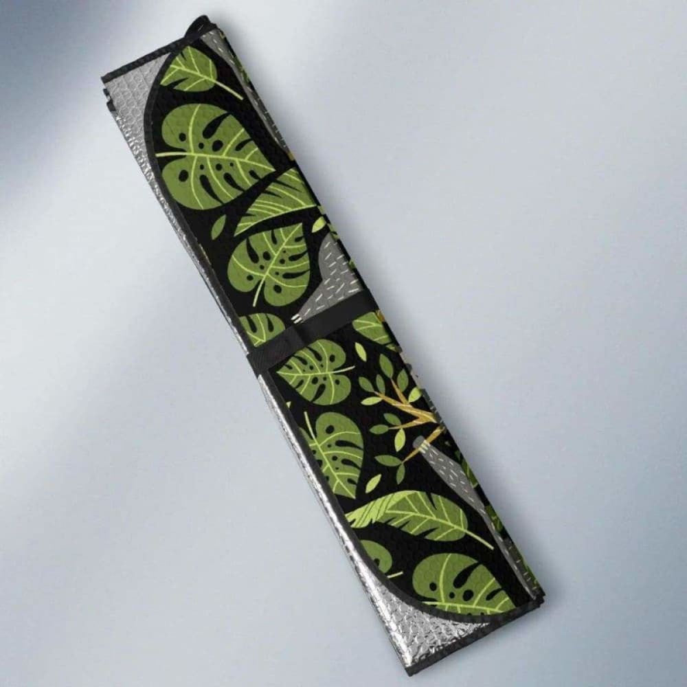 Cute Sloths Tropical Palm Leaves Black Background Car Auto Sun Shades