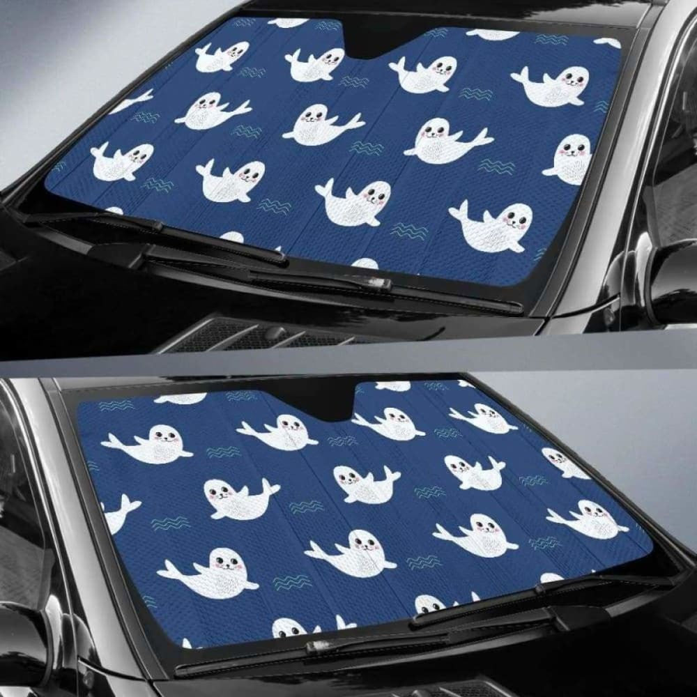 Cute White Baby Sea Lion Seal Pattern Car Auto Sun Shades