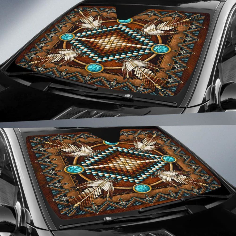 Naumaddic Arts Brown Native American Design Auto Sun Shades