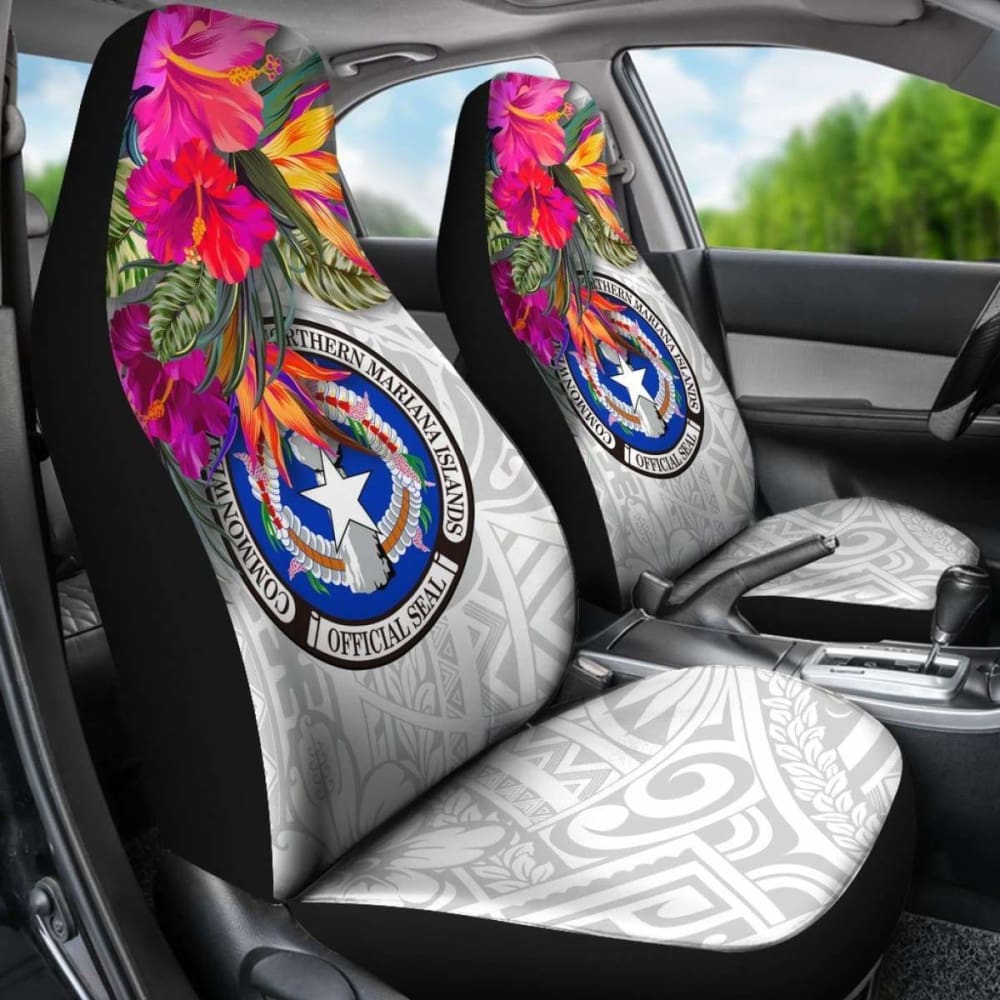 Northern Mariana Islands Car Seat Covers Polynesian Hibiscus White Pattern -