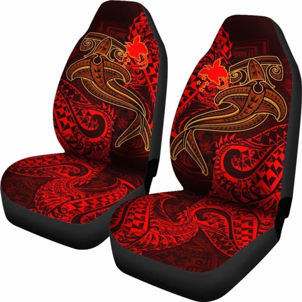 Papua New Guinea Car Seat Covers - Red Shark Polynesian Tattoo -